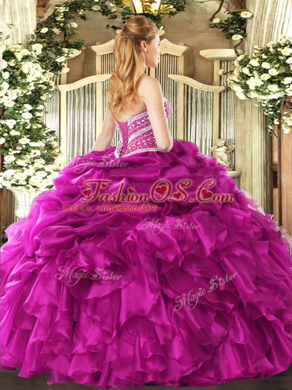 Modern Blue Ball Gowns Beading and Ruffles and Pick Ups Quinceanera Dress Lace Up Organza Sleeveless Floor Length