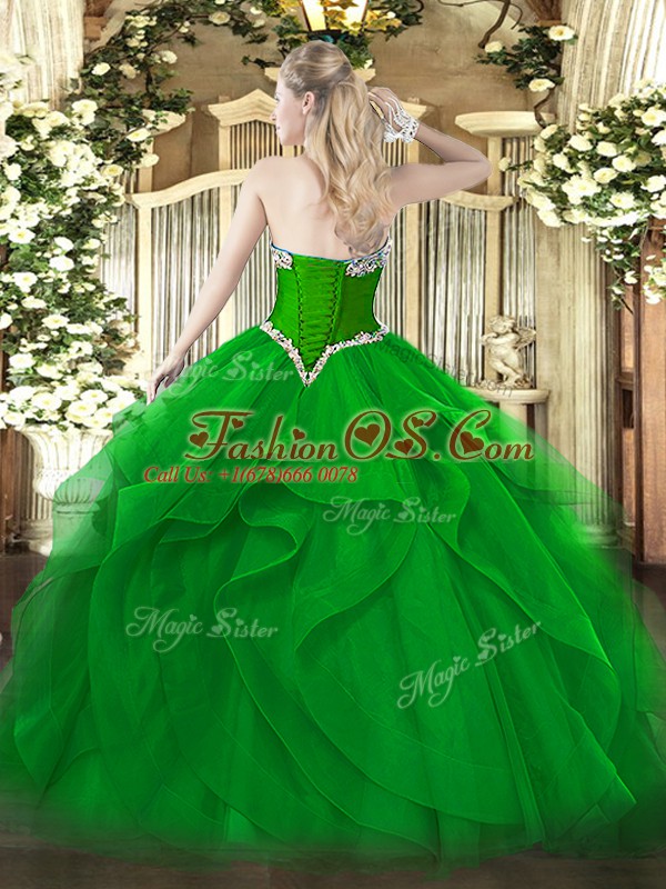Noble Sleeveless Tulle Floor Length Lace Up Ball Gown Prom Dress in Brown with Beading and Ruffles