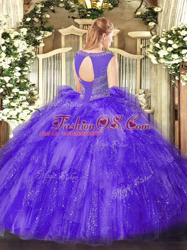 Custom Design Floor Length Lace Up Sweet 16 Quinceanera Dress Watermelon Red for Military Ball and Sweet 16 and Quinceanera with Beading and Ruffles