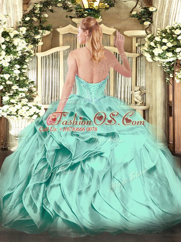 Custom Design Organza Sweetheart Sleeveless Lace Up Beading and Ruffles 15th Birthday Dress in Lavender