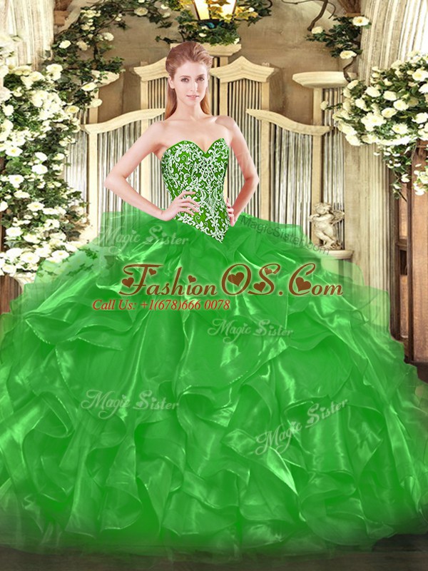 Sleeveless Lace Up Floor Length Beading and Ruffles Sweet 16 Quinceanera Dress