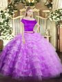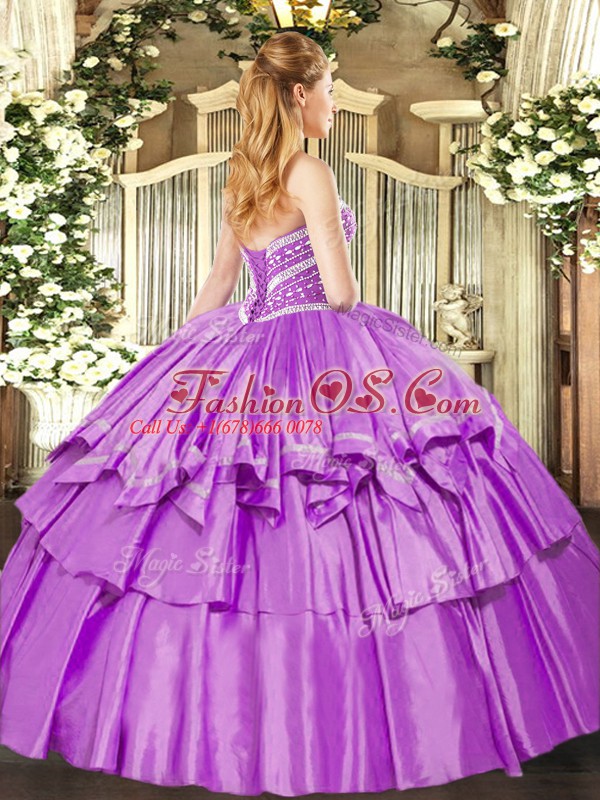Flirting Beading and Ruffled Layers Quince Ball Gowns Apple Green Lace Up Sleeveless Floor Length