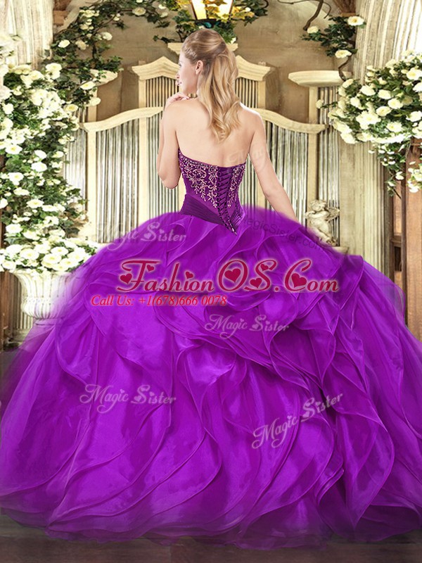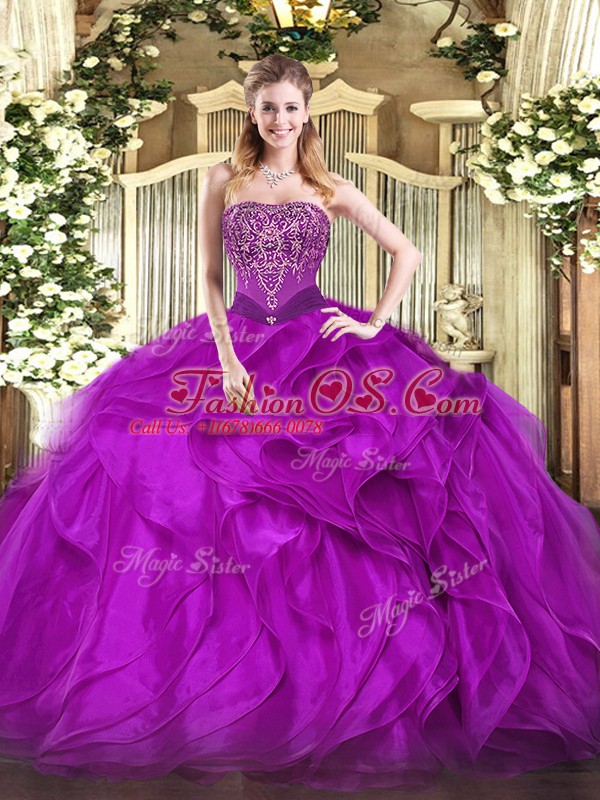 Purple Sweet 16 Quinceanera Dress Military Ball and Sweet 16 and Quinceanera with Beading and Ruffles Strapless Sleeveless Lace Up
