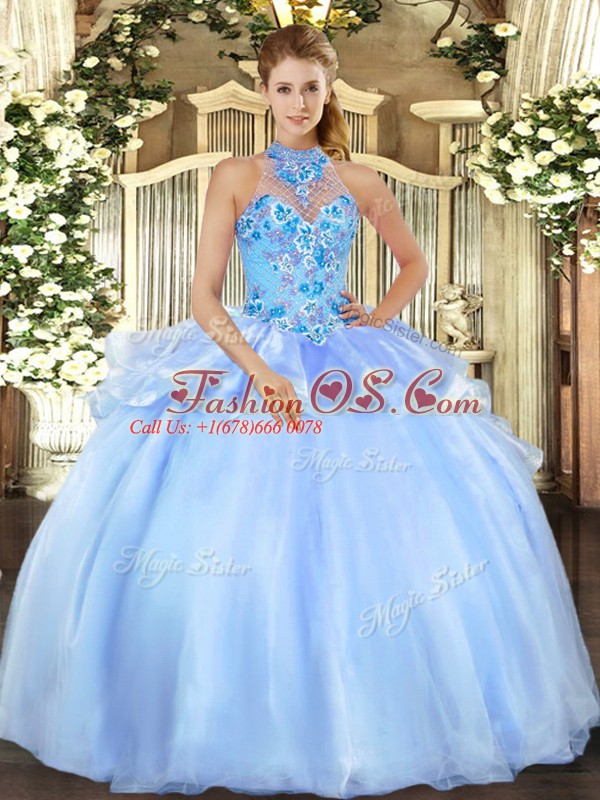 Most Popular Sleeveless Embroidery Lace Up Quinceanera Gown