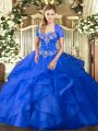 Custom Designed Purple Sleeveless Floor Length Appliques Lace Up Quinceanera Gowns