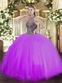 Modern Lavender Tulle Lace Up Sweet 16 Dresses Sleeveless Floor Length Beading and Ruffled Layers
