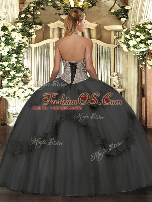 Artistic Halter Top Sleeveless Tulle Quinceanera Gowns Beading and Appliques Lace Up