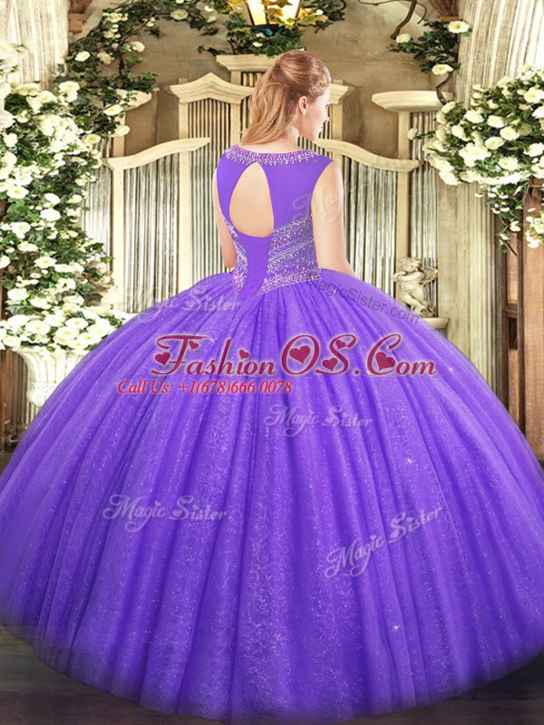 Admirable Ball Gowns Scoop Sleeveless Tulle and Sequined Floor Length Lace Up Beading Sweet 16 Dress