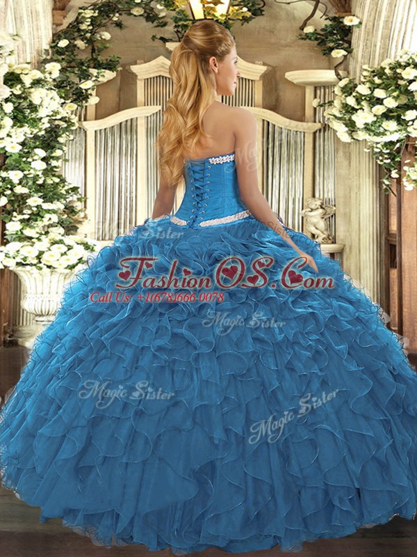 Superior Sleeveless Appliques and Ruffles Lace Up 15th Birthday Dress