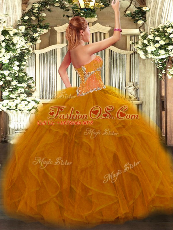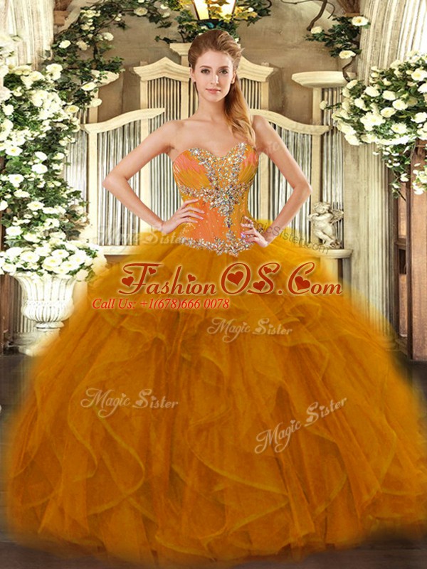 Exceptional Brown Lace Up Sweetheart Beading and Ruffles Quinceanera Gown Tulle Sleeveless