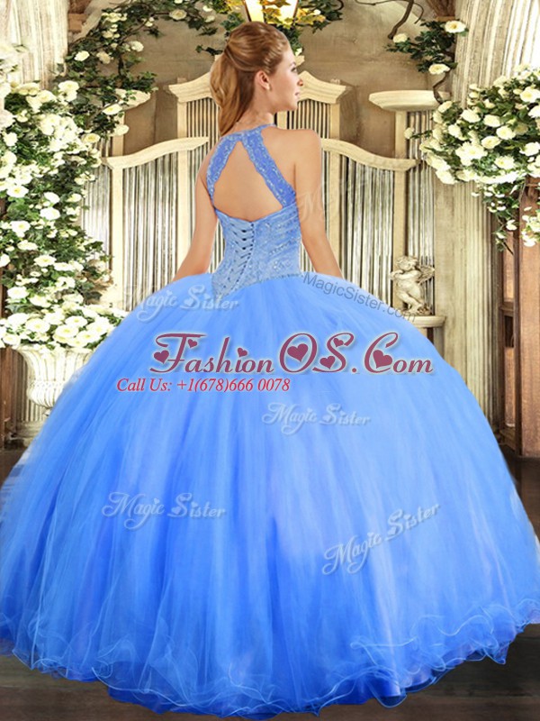 Ball Gowns Quinceanera Gown Lavender Halter Top Tulle Sleeveless Floor Length Lace Up