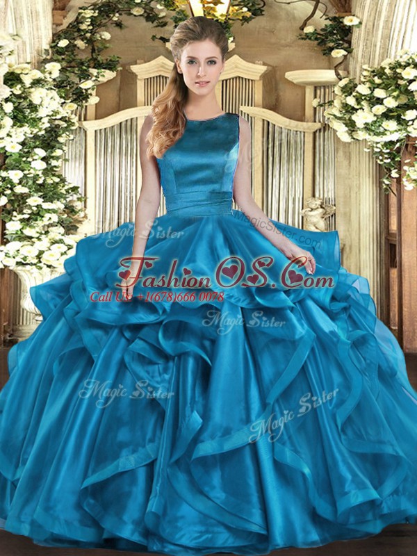 Glorious Teal Lace Up Scoop Ruffles Sweet 16 Dresses Organza Sleeveless