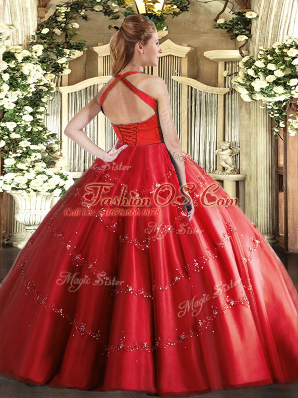 Baby Blue Halter Top Neckline Appliques Quinceanera Dress Sleeveless Lace Up