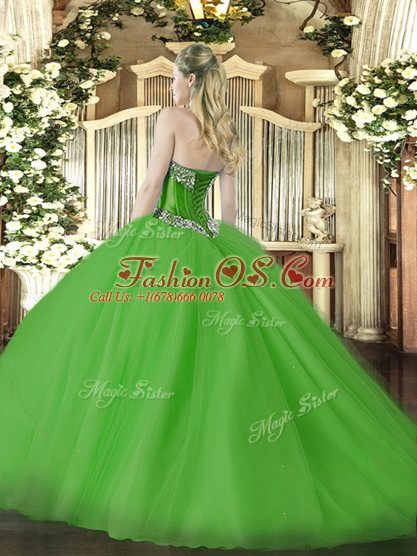 Sleeveless Beading Lace Up Ball Gown Prom Dress with Olive Green Brush Train