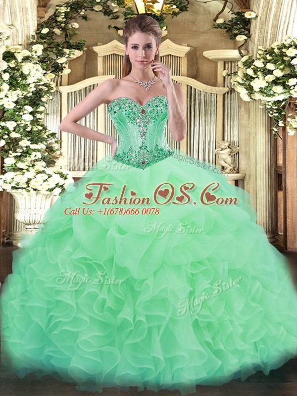 Sweetheart Sleeveless Lace Up Sweet 16 Dress Apple Green Organza