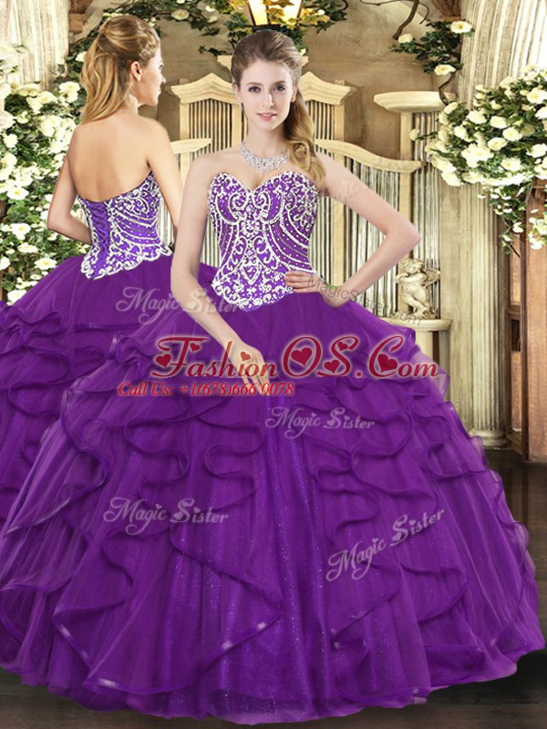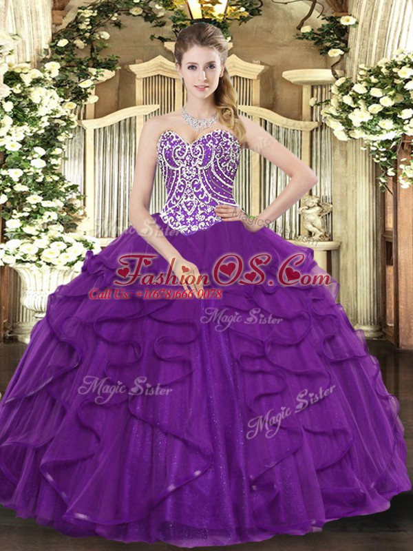 Discount Ball Gowns Quinceanera Gown Purple Sweetheart Tulle Sleeveless Floor Length Lace Up