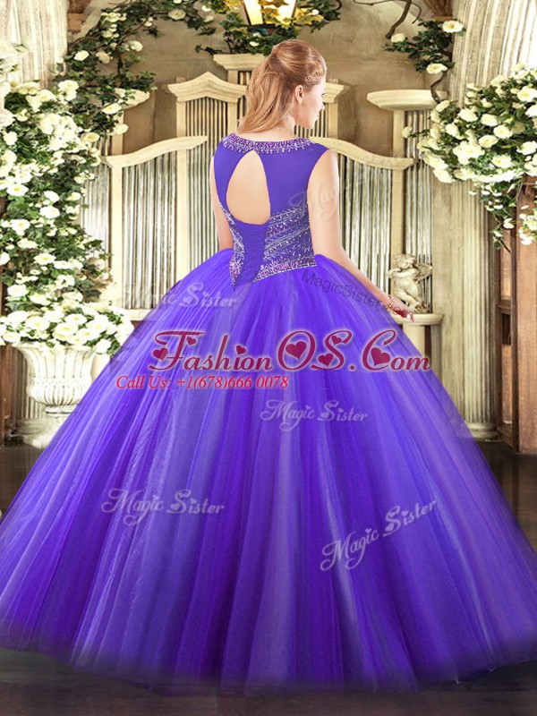 Beautiful Scoop Sleeveless Lace Up Vestidos de Quinceanera Baby Blue Tulle