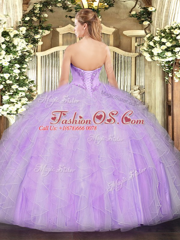 Lavender Sleeveless Organza Lace Up Quince Ball Gowns for Military Ball and Sweet 16 and Quinceanera
