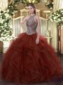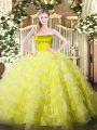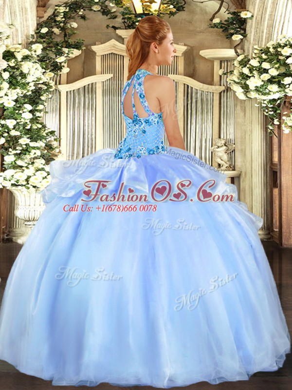 Cheap Sleeveless Organza Floor Length Lace Up Quinceanera Gown in Peach with Embroidery