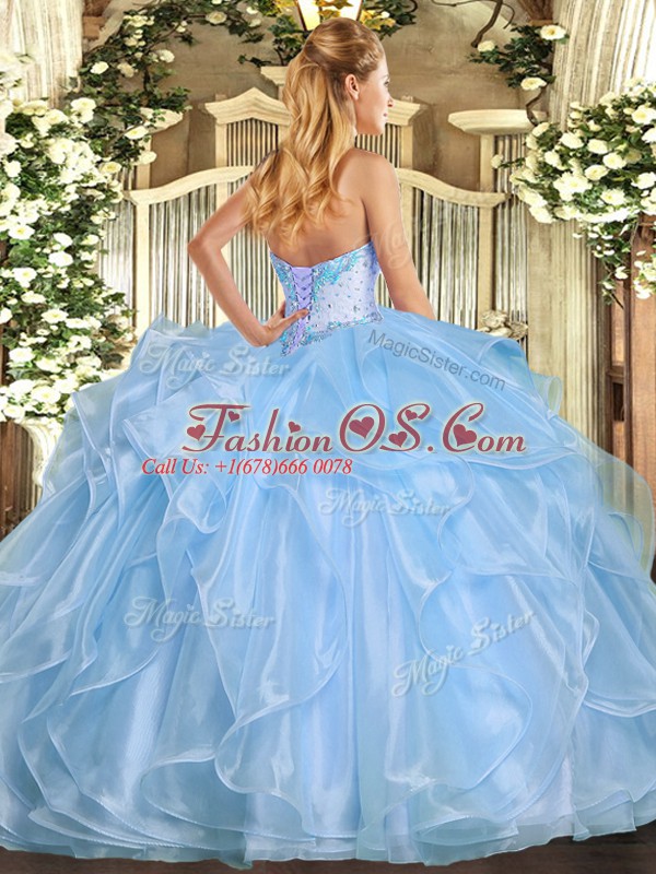 Sleeveless Floor Length Beading and Ruffles Lace Up Quinceanera Gowns with Rose Pink
