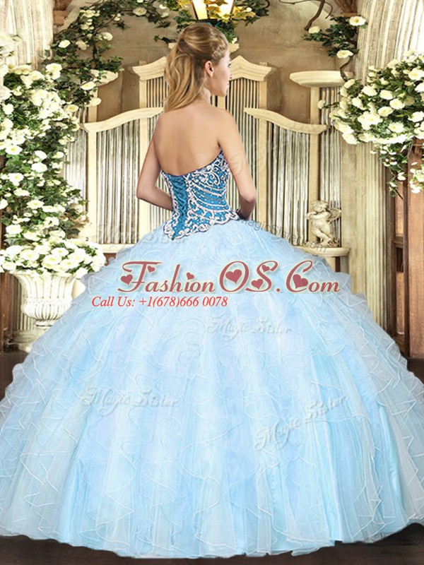 Nice Lavender Ball Gowns Sweetheart Sleeveless Tulle Asymmetrical Lace Up Beading and Ruffles Quinceanera Gowns