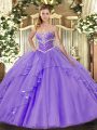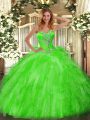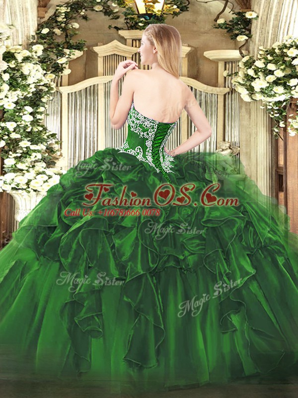 Floor Length Lace Up Sweet 16 Dresses Olive Green for Military Ball and Sweet 16 and Quinceanera with Beading and Ruffles
