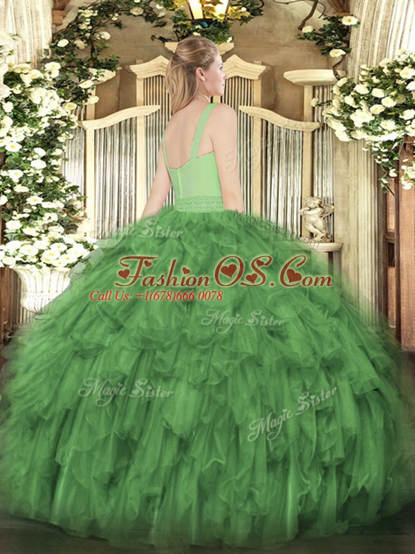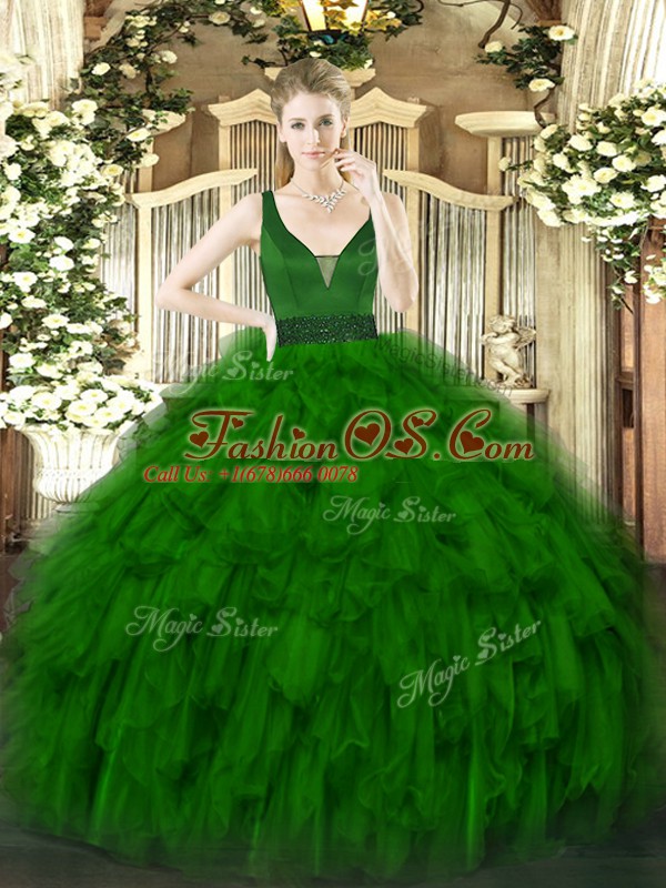 Flare Dark Green Straps Neckline Beading and Ruffles Sweet 16 Dress Sleeveless Zipper