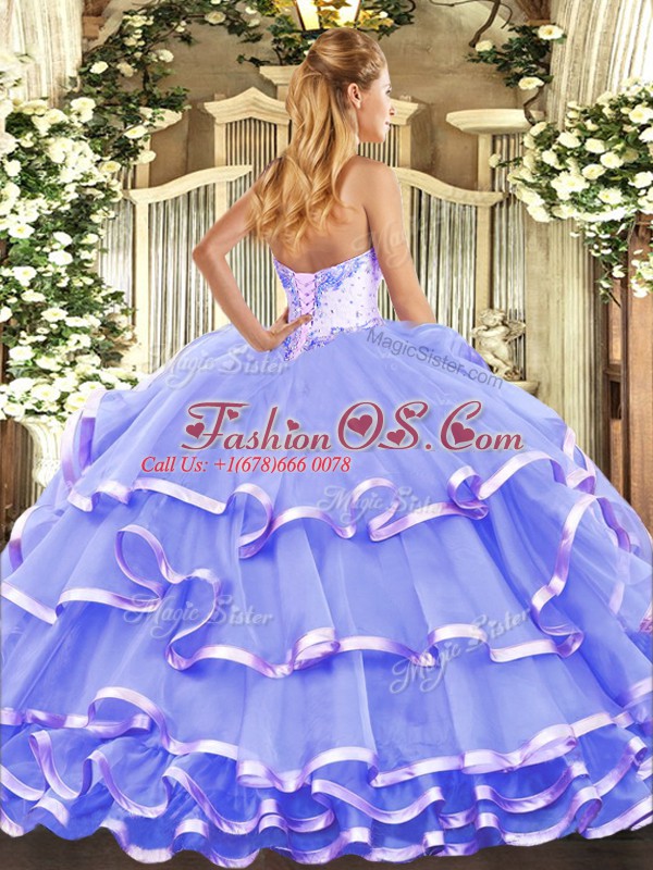 Sweetheart Sleeveless Organza Sweet 16 Quinceanera Dress Beading and Ruffled Layers Lace Up