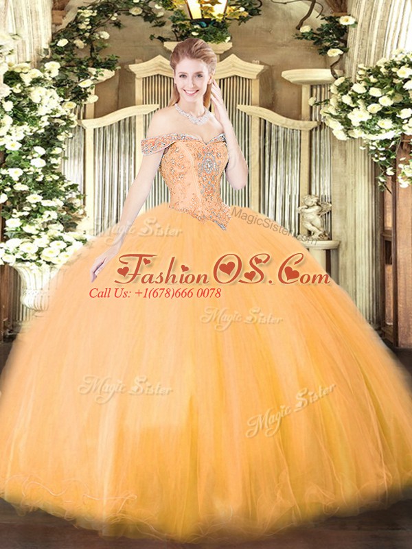 Fine Floor Length Ball Gowns Sleeveless Orange Sweet 16 Dresses Lace Up