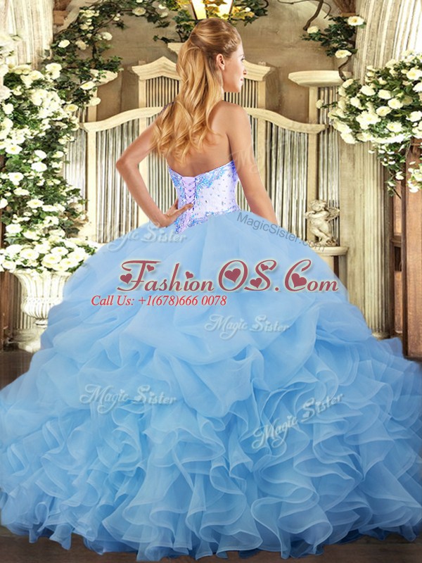 Pretty Sleeveless Beading and Ruffles and Pick Ups Lace Up 15 Quinceanera Dress