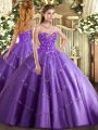 Stylish Rust Red Sleeveless Organza Lace Up Quince Ball Gowns for Sweet 16 and Quinceanera