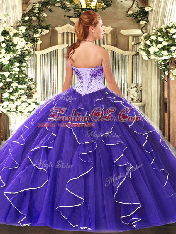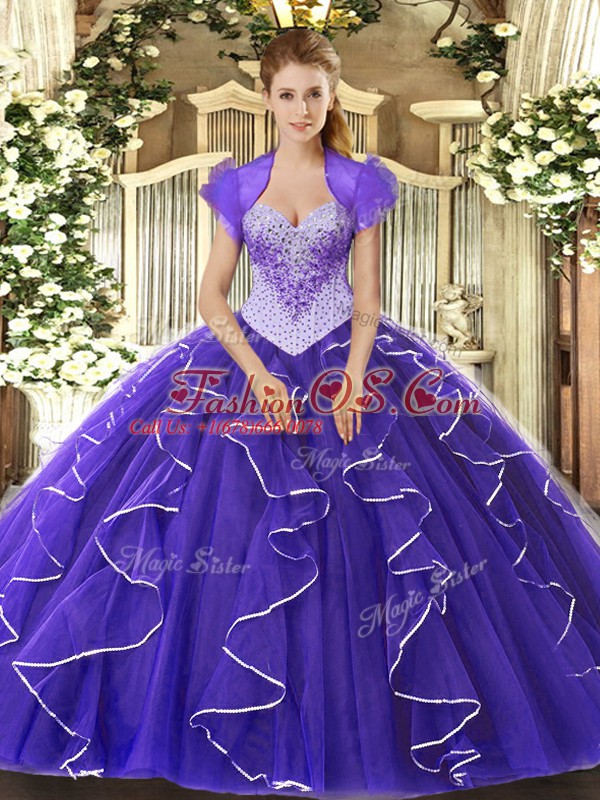 Modern Ball Gowns 15 Quinceanera Dress Purple Sweetheart Tulle Cap Sleeves Floor Length Lace Up