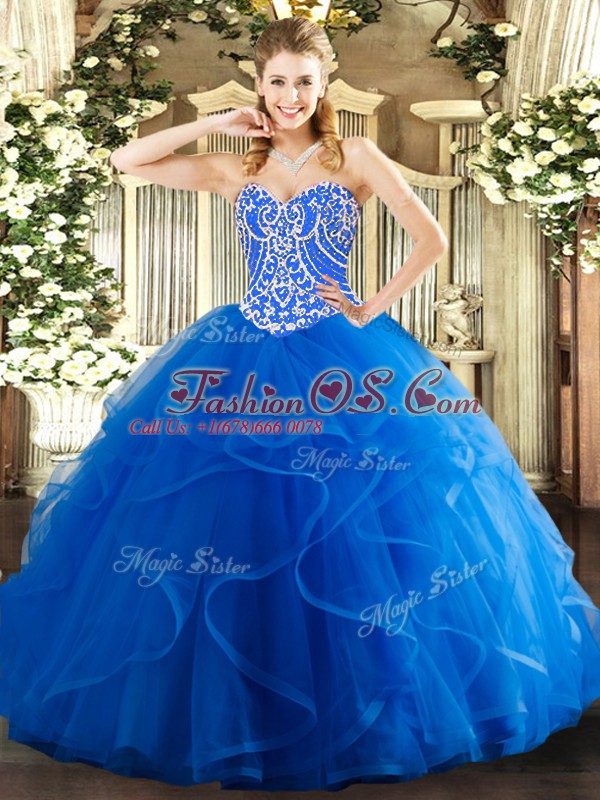 Smart Floor Length Ball Gowns Sleeveless Blue Quinceanera Gown Lace Up