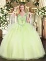 Nice Tulle Sleeveless Floor Length Sweet 16 Quinceanera Dress and Beading and Ruffles
