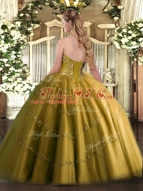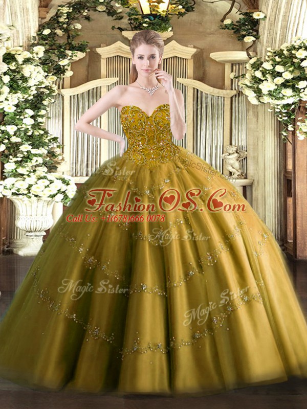 Brown Lace Up Sweetheart Appliques Ball Gown Prom Dress Tulle Sleeveless