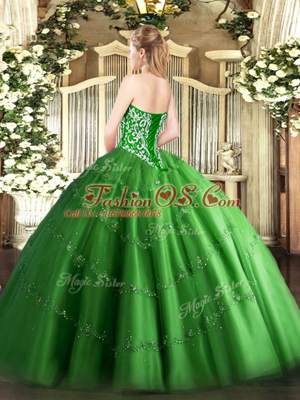 Teal Sweetheart Neckline Beading and Appliques Quinceanera Gown Sleeveless Lace Up