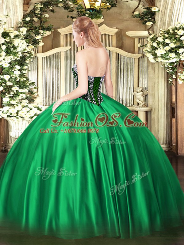 Green Ball Gowns Sweetheart Sleeveless Satin Floor Length Lace Up Beading 15th Birthday Dress