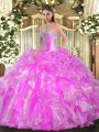 Fashion Rose Pink Lace Up Sweetheart Beading and Ruffles Quinceanera Dresses Tulle Sleeveless