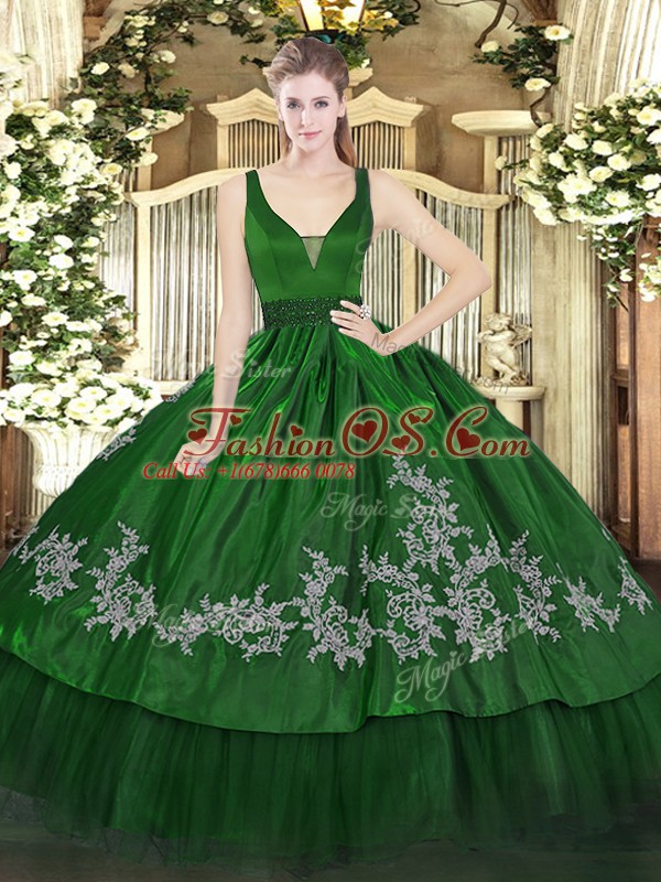 Beautiful Floor Length Zipper Sweet 16 Dresses Dark Green for Military Ball and Sweet 16 and Quinceanera with Beading and Embroidery