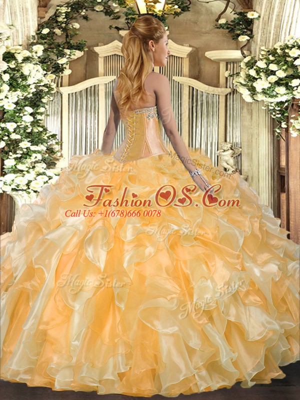 Lilac Sleeveless Beading and Ruffles Floor Length Ball Gown Prom Dress