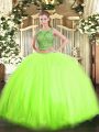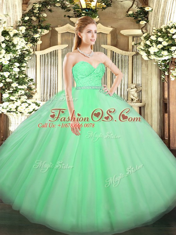Affordable Apple Green Sleeveless Floor Length Beading and Lace Zipper Sweet 16 Dress