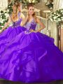 Adorable Sleeveless Tulle Floor Length Zipper Quinceanera Gown in Brown with Beading and Ruffles