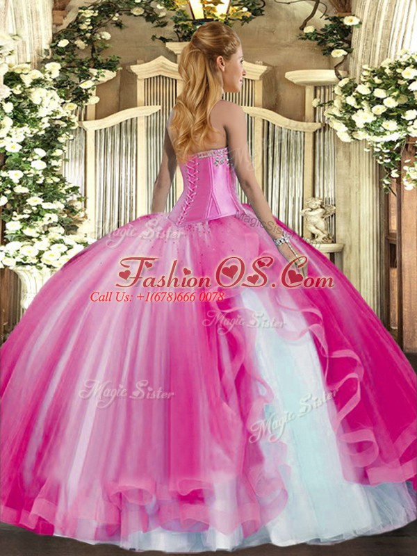 Flirting Baby Blue Sweetheart Lace Up Beading and Ruffles Quinceanera Dresses Sleeveless