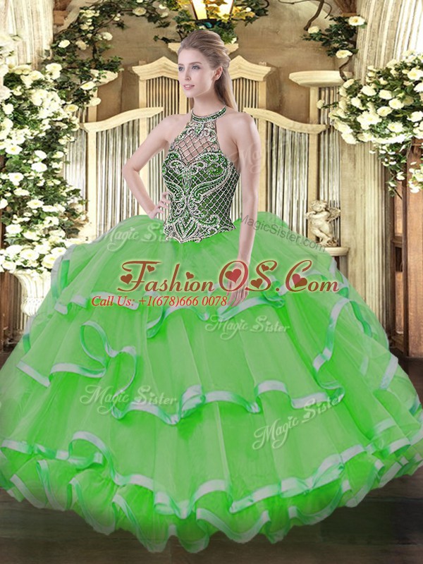 Ideal Sleeveless Organza Lace Up Quince Ball Gowns for Sweet 16 and Quinceanera