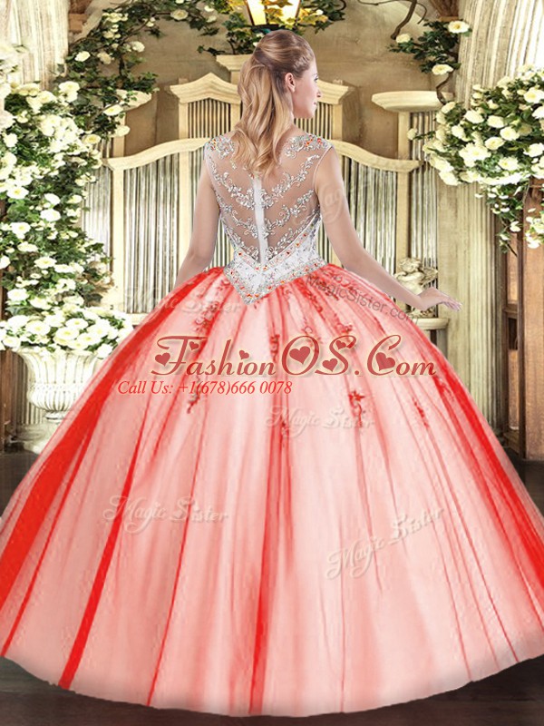 Exquisite Lavender Zipper Scoop Beading and Appliques 15 Quinceanera Dress Tulle Sleeveless