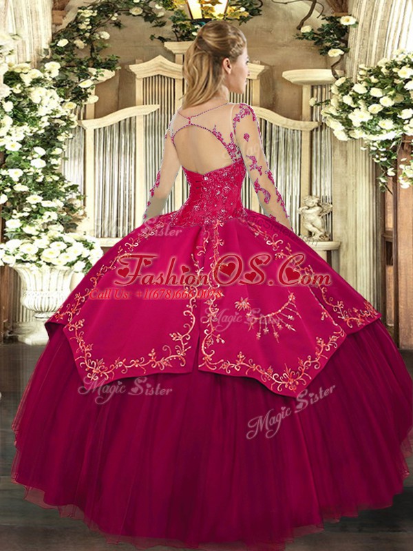 Sumptuous Scoop Long Sleeves Lace Up Sweet 16 Quinceanera Dress Purple Organza and Taffeta