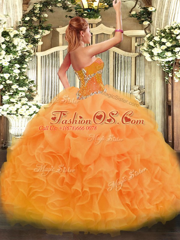 Sleeveless Floor Length Beading and Ruffles Lace Up Quinceanera Dress with Blue