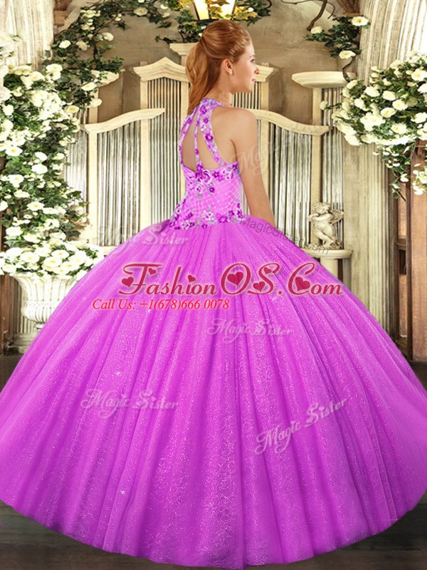 High Quality Halter Top Sleeveless Sweet 16 Dress Floor Length Beading Lavender Tulle