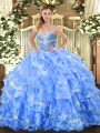 Romantic Lace Up Strapless Beading and Ruffles Sweet 16 Dresses Organza Sleeveless