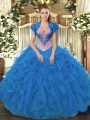 Hot Sale Lavender Ball Gowns High-neck Sleeveless Tulle Floor Length Lace Up Beading Quinceanera Gowns